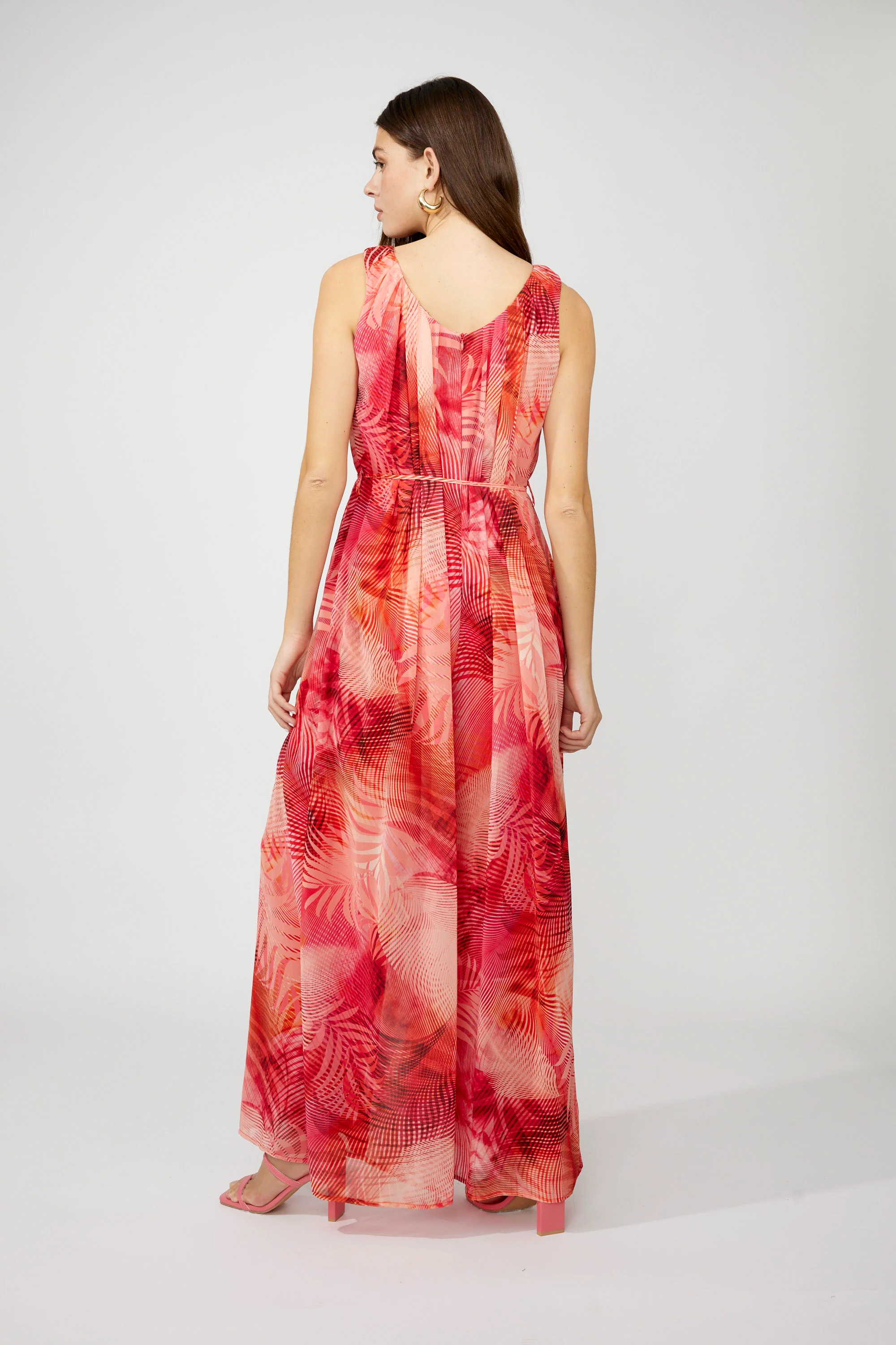 Discover the perfect blend of feminine and bohemian style with Frank Lyman's full-length jumpsuit. Featuring a round-neck design, belted drawstring, and sleeveless cut, this jumpsuit is ideal for casual summer occasions. The floral pattern adds a touch of elegance, making it a versatile addition to your wardrobe. Experience comfort and style effortlessly with this must-have piece.