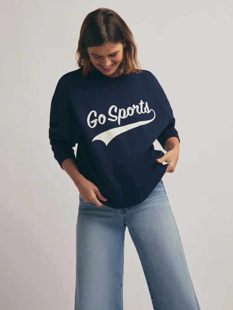 "You don't have to pretend anymore that you have a favorite team. Our oversized sweatshirt is made from a cotton blend (so it shrinks to fit just right). With the drop shoulder and relaxed fit, this retro-inspired classic makes every outfit feel sporty."