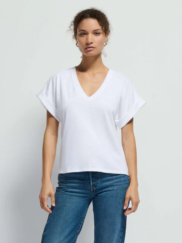 We elevated your everyday V neck with rolled boxy sleeves and an easy, relaxed silhouette. You’re welcome.