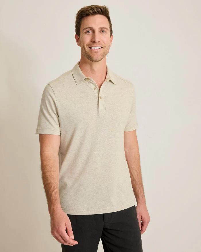 A soft and lightweight linen-cotton blend in sun-washed hues inspires an easygoing polo style that's elevated by trim details and its subtle piqué texture.